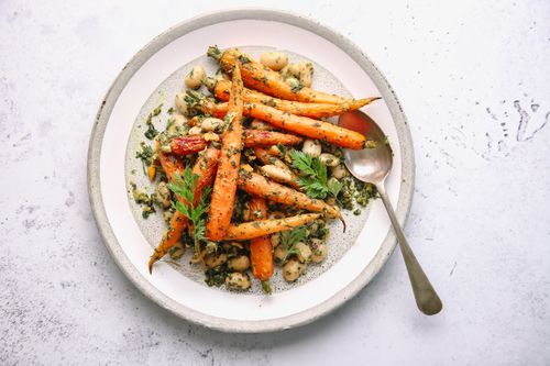 In this low-waste recipe, we transform humble ingredients into a tasty dinner. Utilising the often-overlooked carrot tops combined with roasted carrots and butter beans.